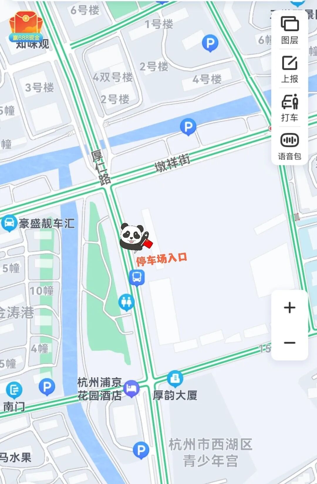 该公共停车场位于三墩镇厚仁街东侧(墩祥街与广业街之间),有车位198个。投入运营之后,可有效辐射厚仁商业街、三墩镇民生综合体、西湖区青少年宫三墩宫等公共区域,减轻周边交通负担。