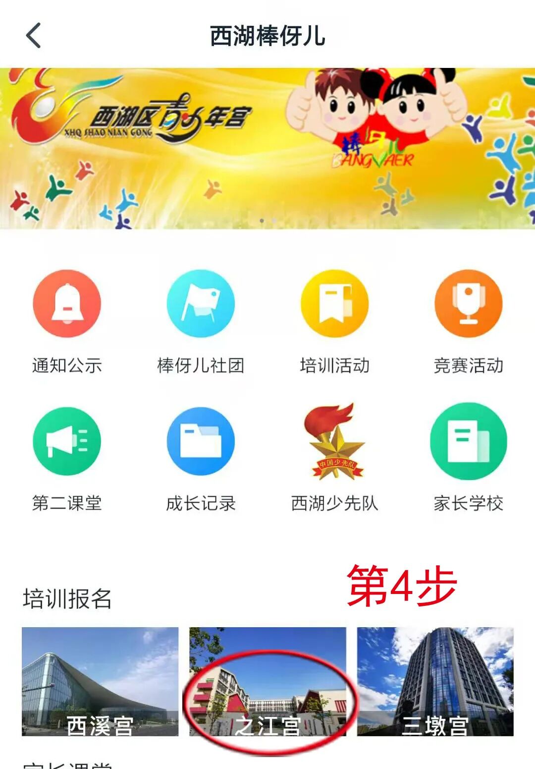 第4步:进入“培训报名”中的某一宫。