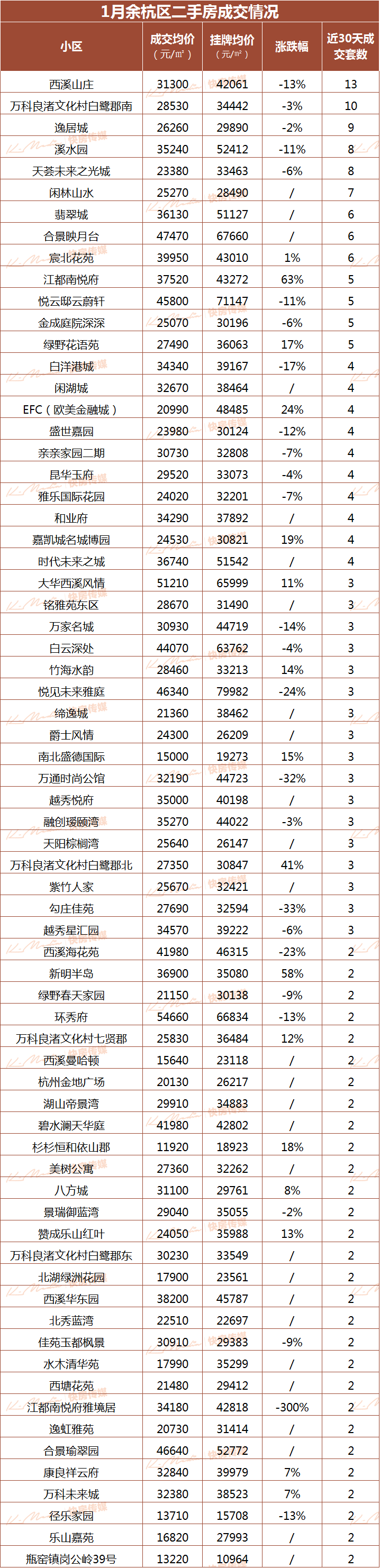 12月西湖、余杭二手房成交榜出炉!三墩、良渚情况如何?