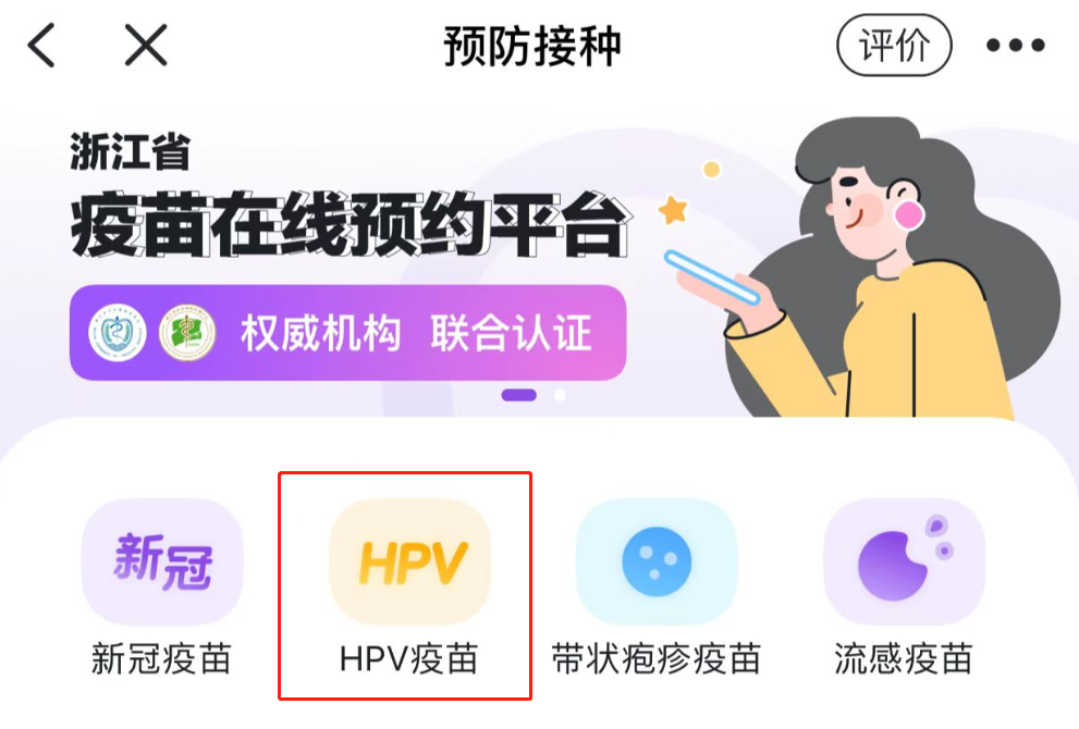 2.进入预防接种页面后,点击“HPV疫苗”。