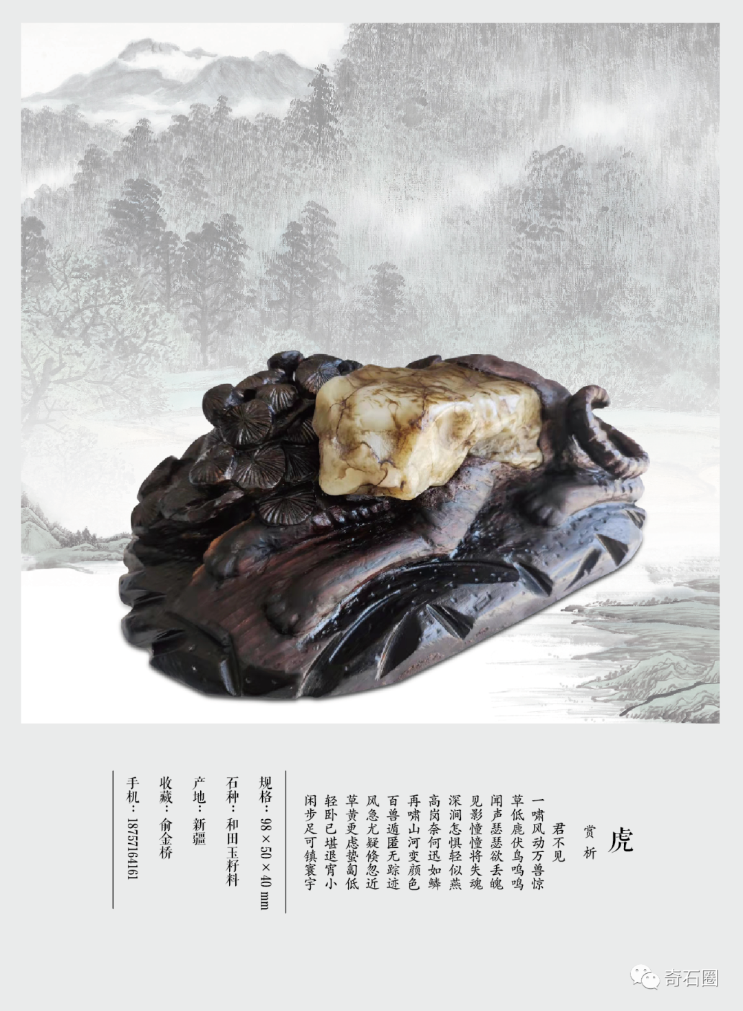 人生的趣味有很多,堪称高雅且流传至今的却很少,而赏石与赋诗便属其中之二。一方石饱经风霜、历尽劫波,方得奇形、妙态和神韵。这与人之一生是何其相似?怎能不让人睹石思己?怎能不让人思绪万千?怎能不让人有感而发?赏的是雅石,所发者当为雅言,才能更增雅趣,古诗词无疑是中华传统雅言的精华所在。因此,给心爱的石赋以多情的诗可谓是标配了。在赏心悦目之时,还可浅吟低唱,岂不乐哉?如果你也想善待自己的藏石,为其命名、配座、赋诗、做图并希望分享给各地的石友,那就来『奇石圈』投稿吧。我们长期征集《诗赏雅石》作品,欢迎大家积极参与、踊跃投稿。具体要求如下:1.投稿内容:各类藏石,可以是单品也可以是小品组合,必须确保纯天然;2.藏石图片:明亮清晰的正面图,干净、不杂乱,石头和底座(若有)要拍全,切忌只拍局部;3.藏石信息:题名(若有)、规格、石种、产地、藏家(可留联系方式)、诗词(若有)缺一不可;4.投稿方式:直接添加微信qishiquan0430联络、投稿,烦请注明“诗赏雅石”投稿;5.后续推广:先汇总后筛选,然后对入围作品进行专业的做图、编辑、排版等操作,并按5-8方/期予以展播,供全国的石友们雅赏品鉴。6.相关费用:因涉及到专业人员的劳动付出和平台的运营成本,本栏目会收取合理的费用,详情见下表。若支持原创,别忘了点右下角的【在看】鼓励一下,谢谢!
