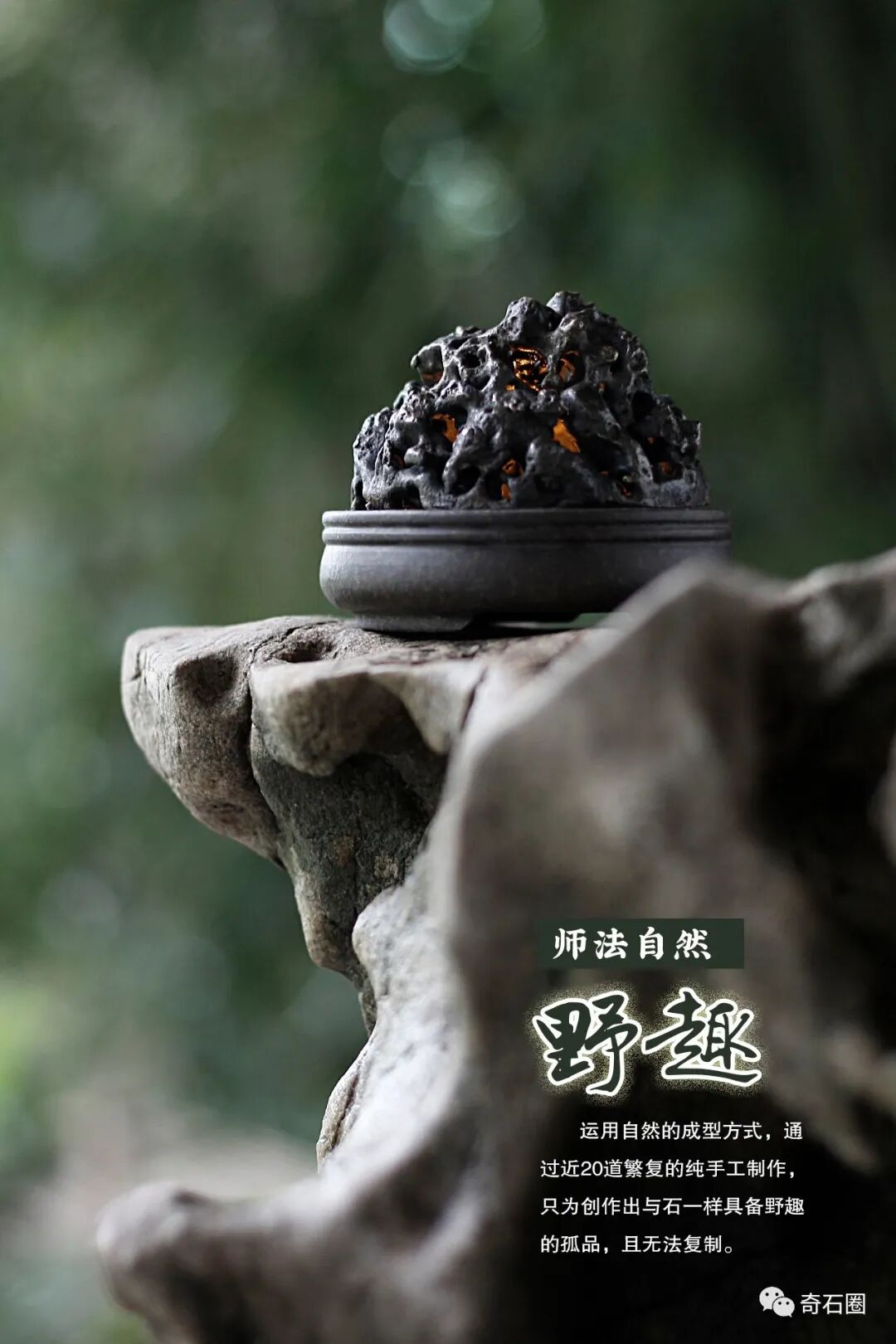 郑登先生深知,仅作为观赏性物件是不够的。继而又把这种赏石的元素融入到实用器物中,使器物都成为不可复制的孤品。如此,这项全新的工艺亦有了更多延展的空间,富有了更强的生命力。目前香炉和茶刀陆续有成品进行分享。一经上市即受到众多的关注和抢购,亦有部分流入海外市场。
