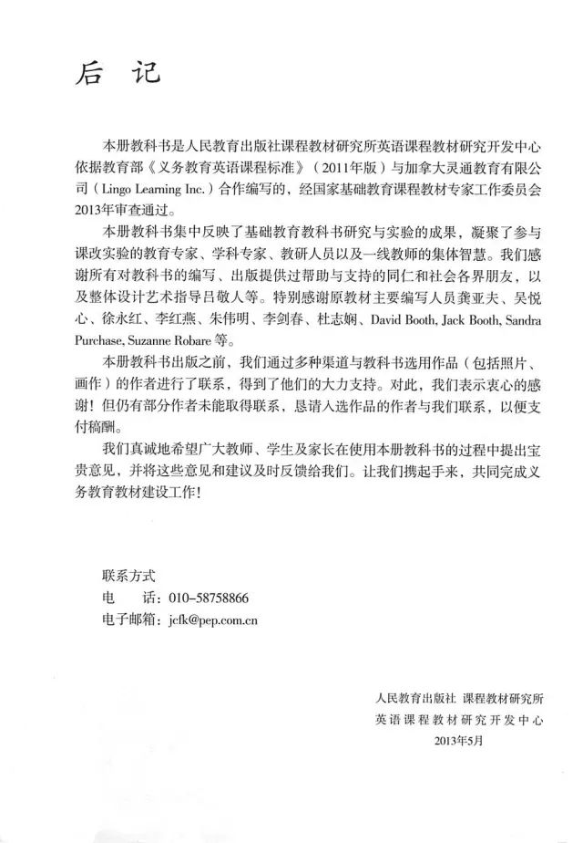 2019秋人教版PEP五年级上册英语电子课本(高清版)