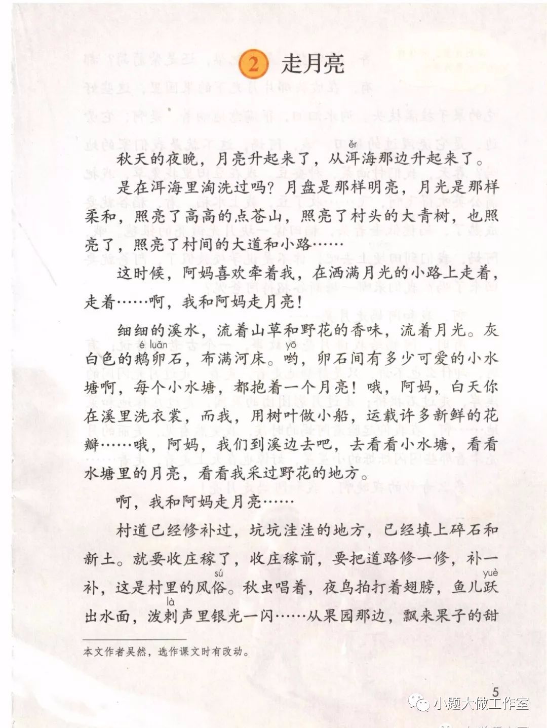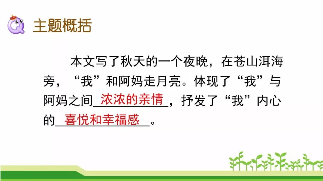 本文描述了“我”和阿妈在秋天的夜晚走月亮的情形。