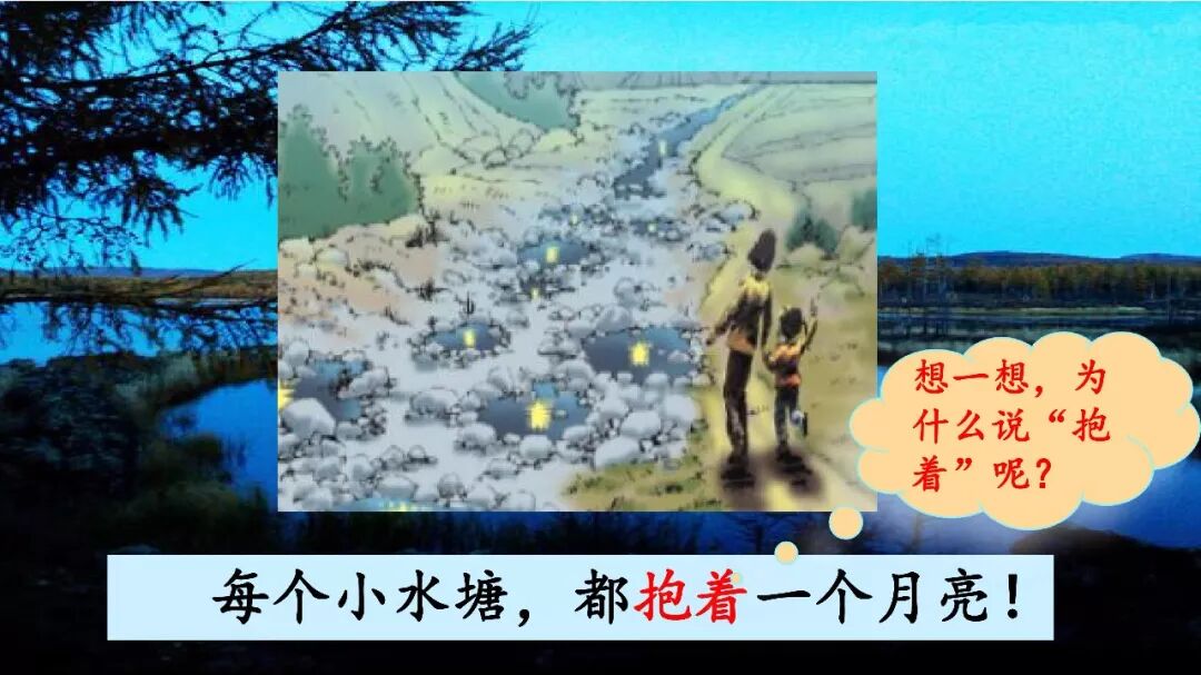 2.哟,卵石间有多少可爱的小水塘啊,每个小水塘,都抱着一个月亮!