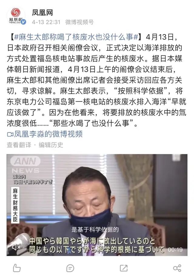 “又不是日本一个国家在排,所有国家都在排放,有什么问题?”
