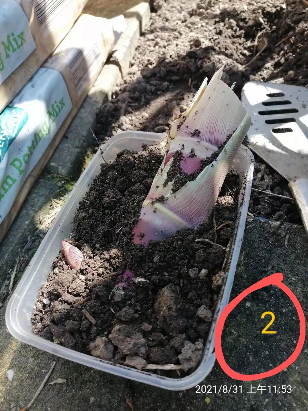 移植前,大家先在地里挖一个长方形的坑,深度约25–30左右。甘蔗种可以放进坑里,放的时候要注意,苗芽要左右两边方向放置,不能上下方向放。甘蔗的另一边稍微抬高一点。整个操作按图片里做就可以大丰收。培泥土,把育苗的泥土和水都一起培进去。