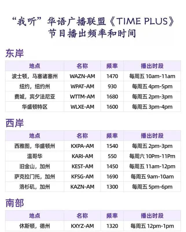 TIME PLUS 是我听华语广播联盟在全美十个城市播出的广播节目。
