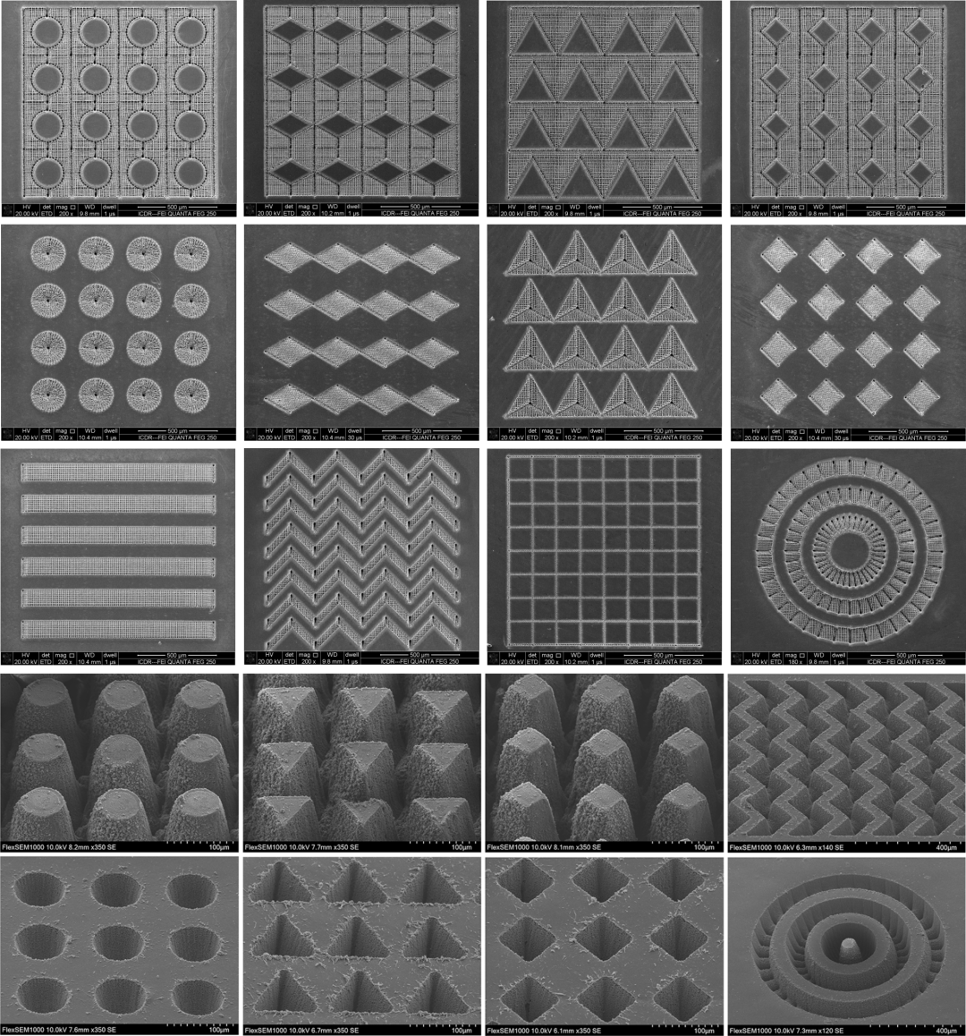 图2. 飞秒激光制备的各种二维三维微纳图案化结构