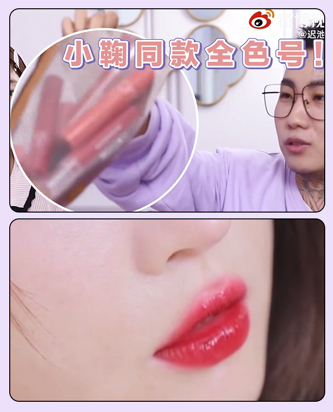 小鞠的唇妆,大部分时间都是那种水嘟嘟的玻璃唇质感,颜色走的是艳丽挂~