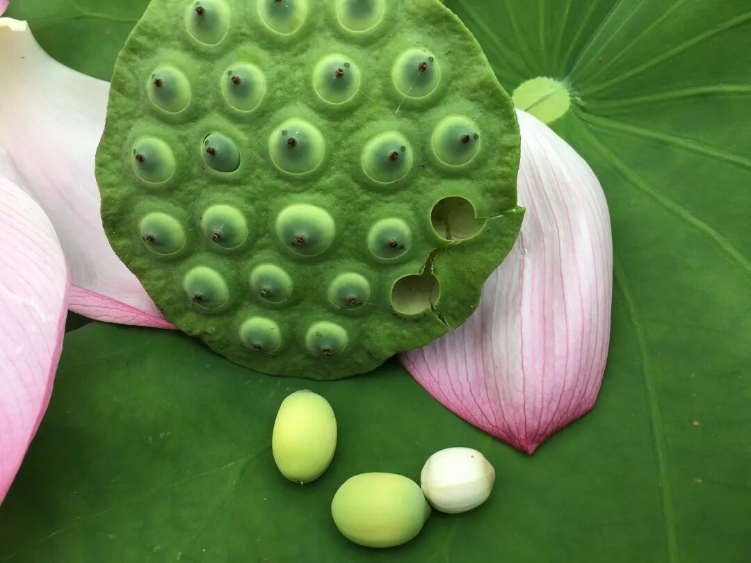 品尝过后队长直呼,原来,新鲜莲子跟干莲子的味道完全不一样!从新鲜莲蓬里摘出来的莲子,还带着自然的气息,嫩嫩的,鲜翠欲滴。