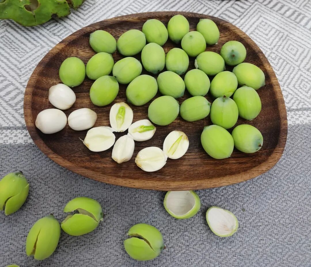 一年中只有在这个时候,才能吃到的新鲜水果莲蓬。它跟市面上的干莲子比起来,味道更清甜。