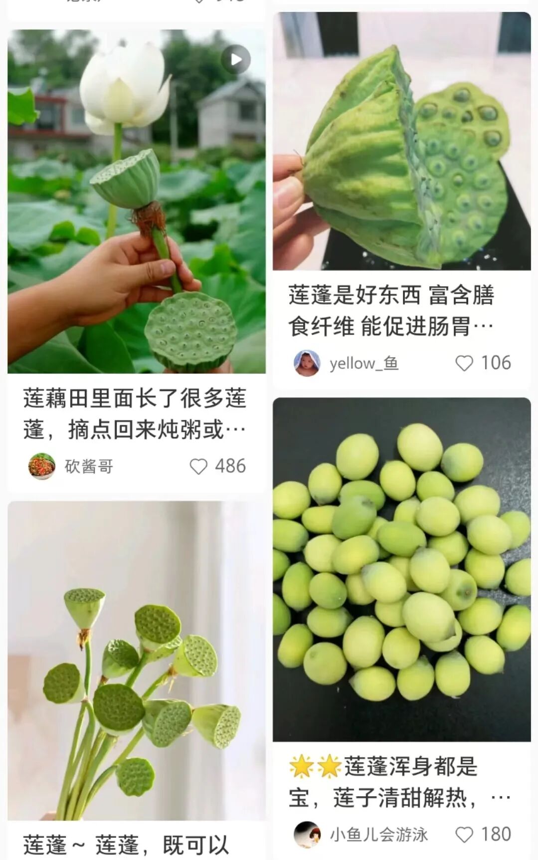 队长想起第一次吃莲蓬,还是在路边摊买的,十元三个或者四个。买完后还没吃几颗,我就后悔了,莲子米很小颗,好难剥!