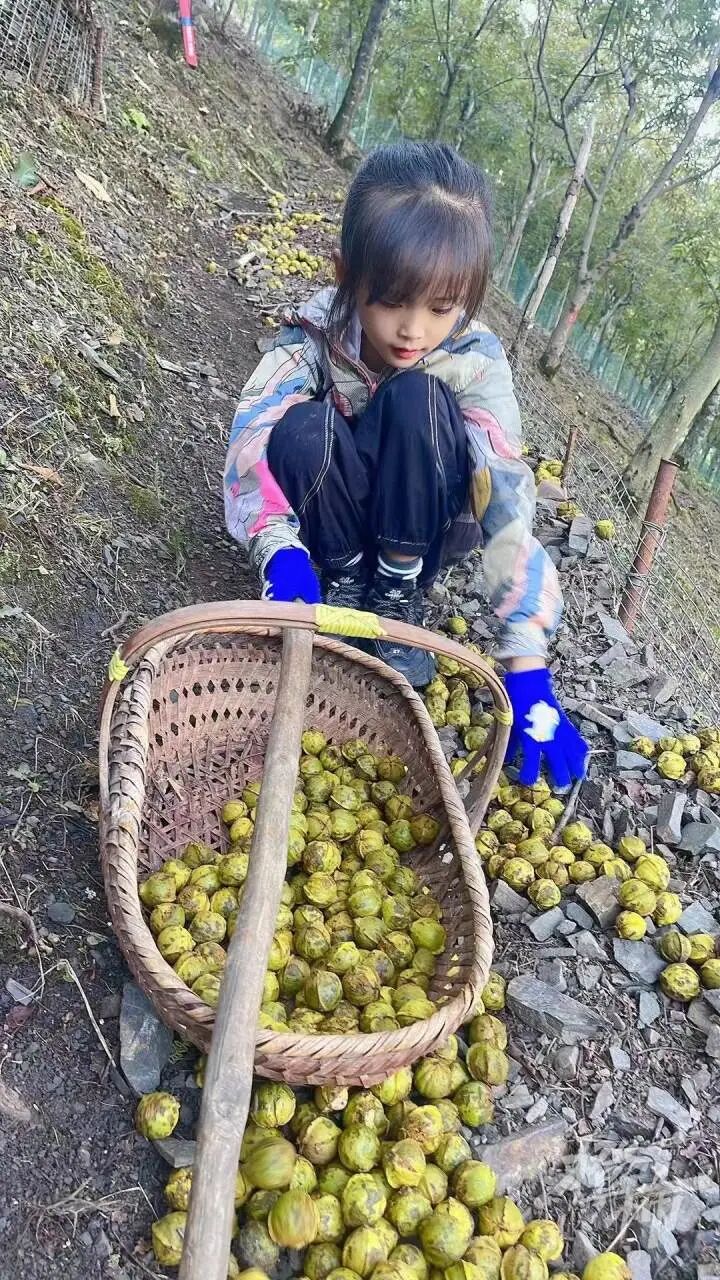 这个山核桃季,“帅老大”9岁的外孙女也同样放了“山核桃假”,上山来帮外公外婆捡山核桃,不同于女儿帅水丽读书时放“山核桃假”后还要回校交2斤干籽的年代,外孙女如今是零负担。