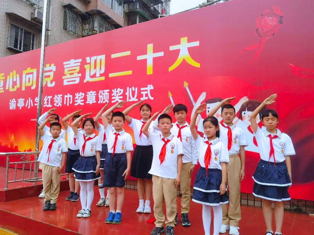 童心向党·喜迎二十大——谕亭小学红领巾奖章颁章典礼在谕亭小学本部校区、毗河校区同时举行。