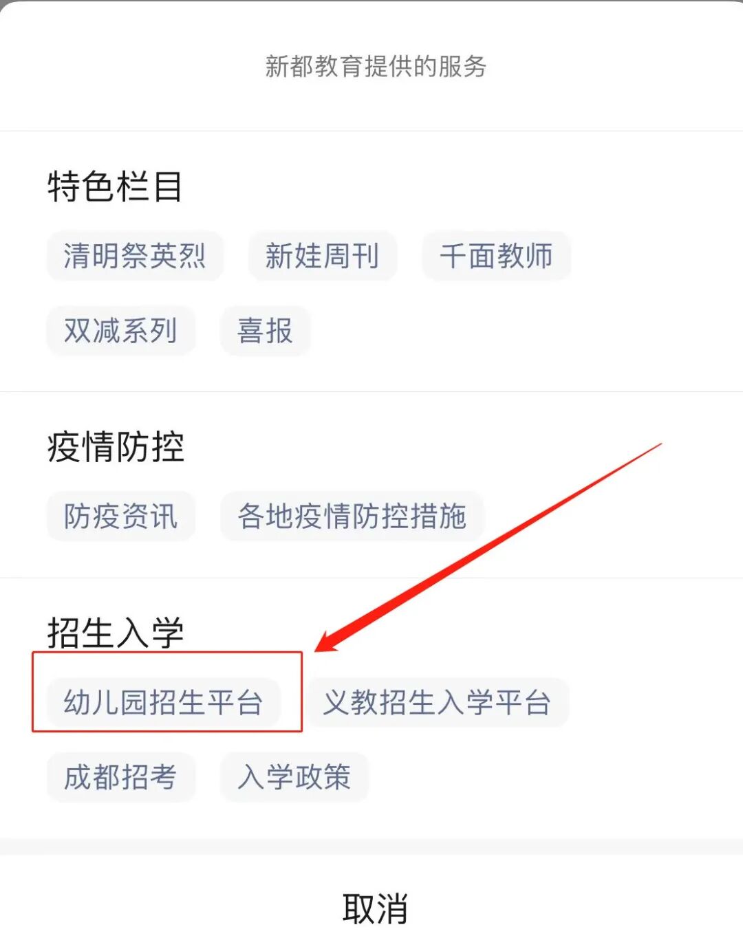 通过电脑访问“成都招生考试网”,点击“幼儿园招生入园服务平台”进行报名