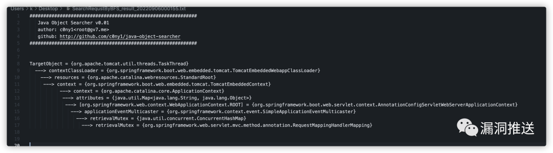 所以我们直接用过java_object_serach来在Thread.currentThread()中搜索该class的路径,结果如下