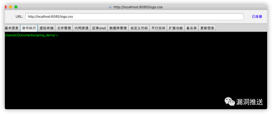 然后访问/logo.css试试,成功命令执行内存马注入