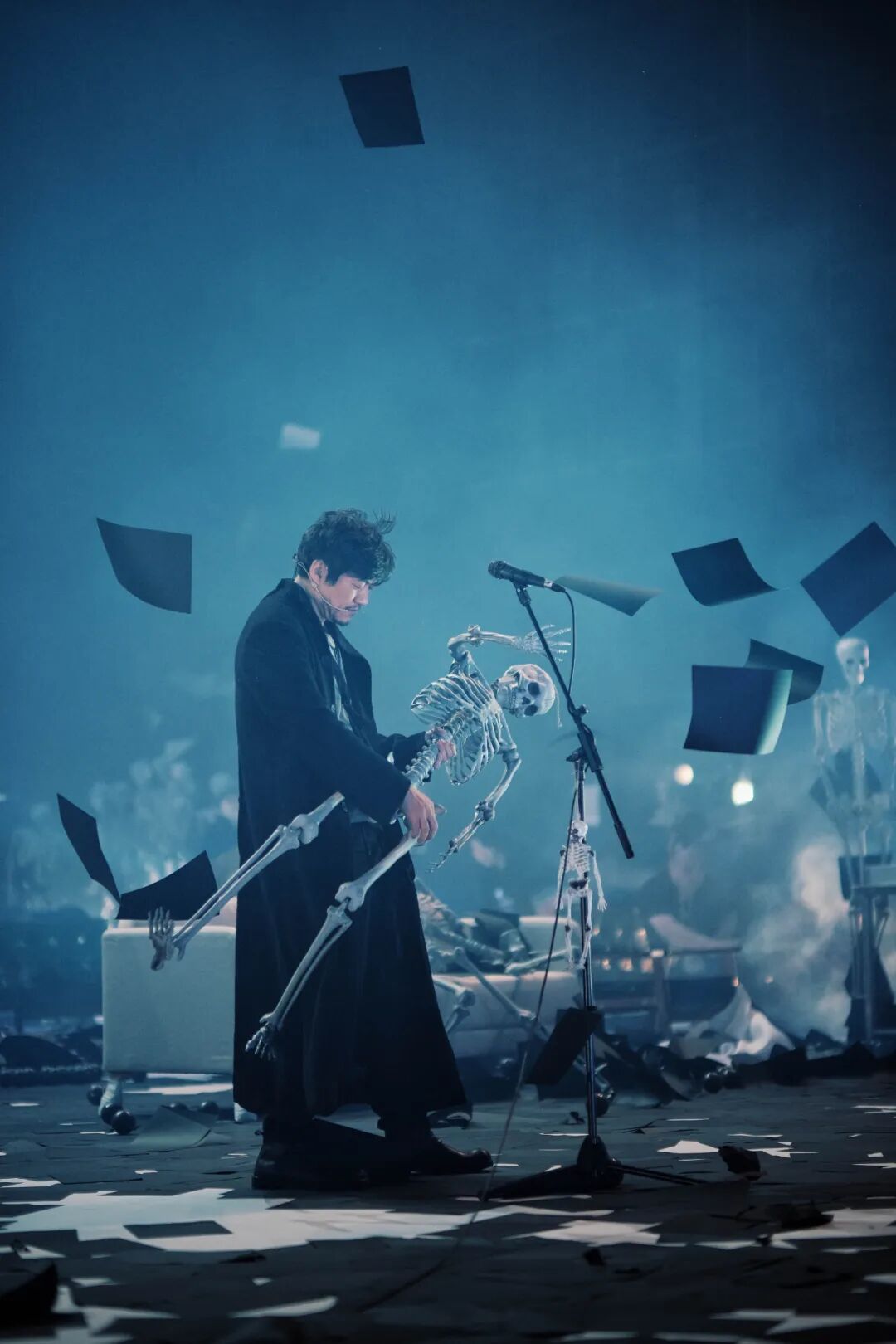 陈明昊:有一次我上台,当时观众就在我面前,我却望见了不远处的大石头缝里,长出了茂密的草。观众并不知道我当时在看什么,我也不知道为什么自己注意到了那棵草。但是,那一瞬间,一棵草带给我了巨大的能量。它传达给我一种思考:如果那个世界是一种再生,你是不是就不再害怕了?记得杨飞的第一句台词:“浓雾弥漫之时,我走出了出租屋,在空虚混沌的城市里孑孓而行。我要去的地方名叫殡仪馆,它过去的名字叫火葬场……”看到原著时这句词就很吸引我,我说开场就念这句吧。因为从这句词开始,就预示着我们要带领观众进入另一个世界了。