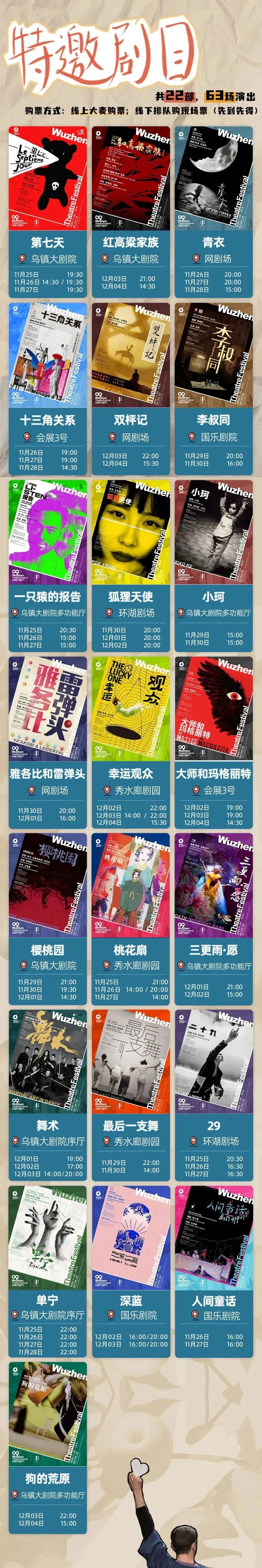 功能介绍 乌镇戏剧节由陈向宏、黄磊、赖声川和孟京辉共同发起,以拥有1300余年建镇史的乌镇为舞台,上演世界级精品剧目以及年轻戏剧人的原创作品。