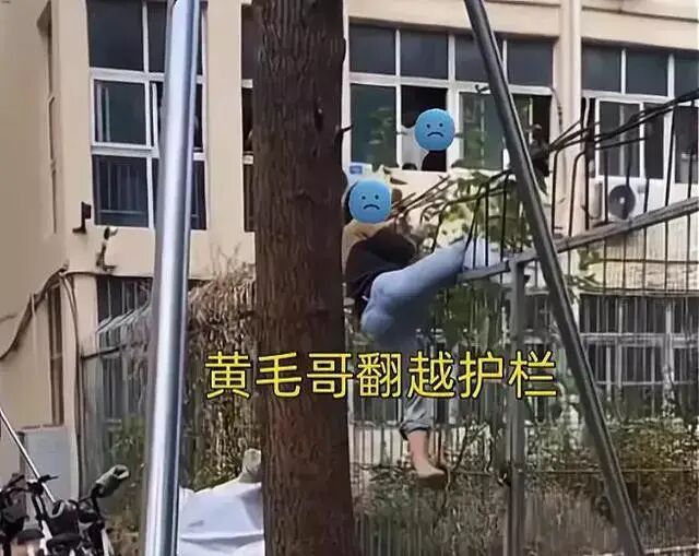 因为疫情防控,学校不能进入陌生人,所以他就翻围墙以及护栏进来。