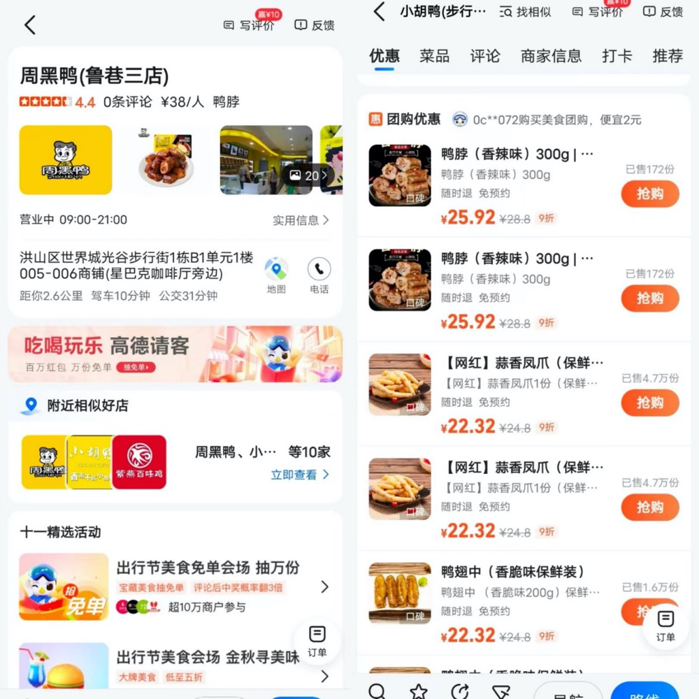 图注:高德地图V12中的地标夜景和购物中心商家展示。
