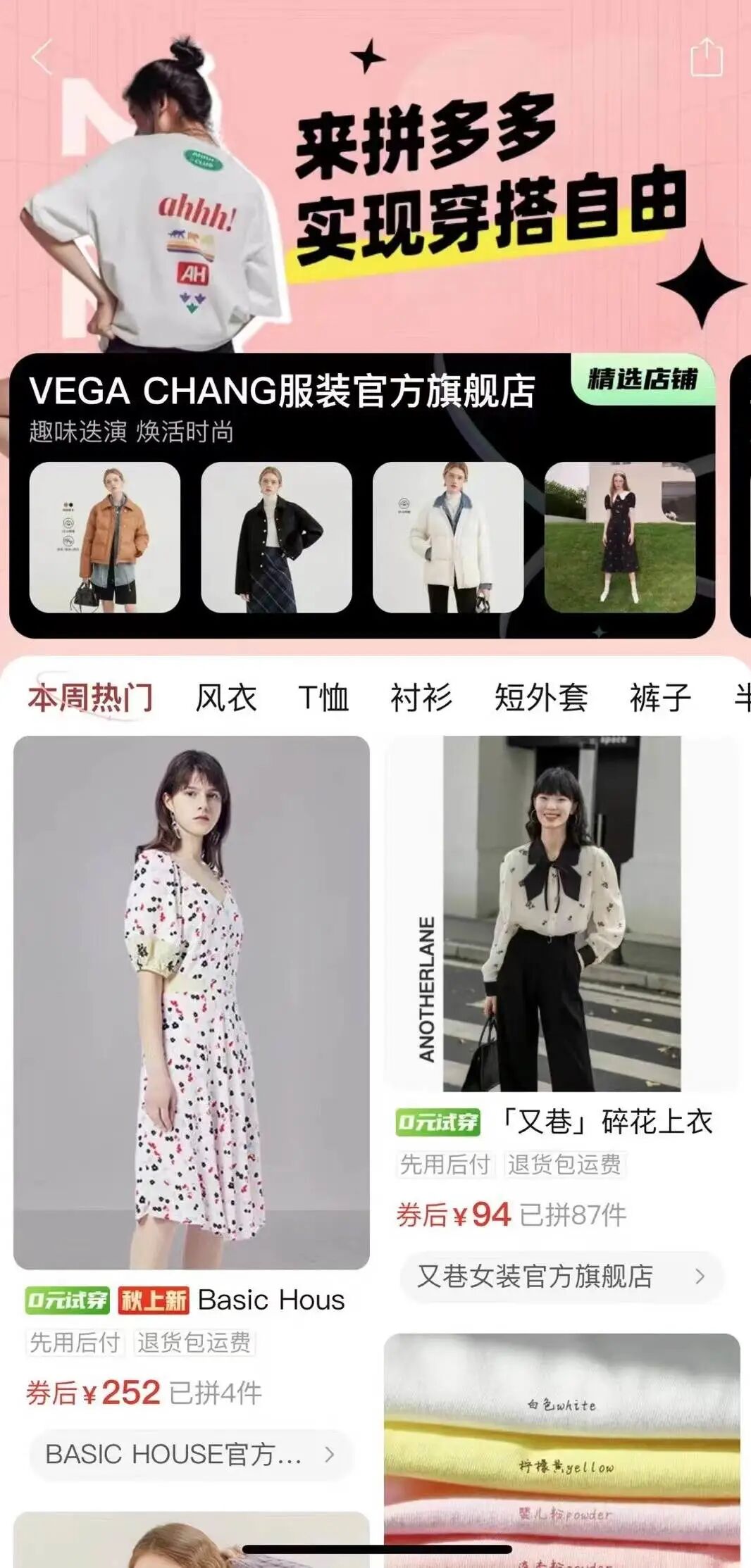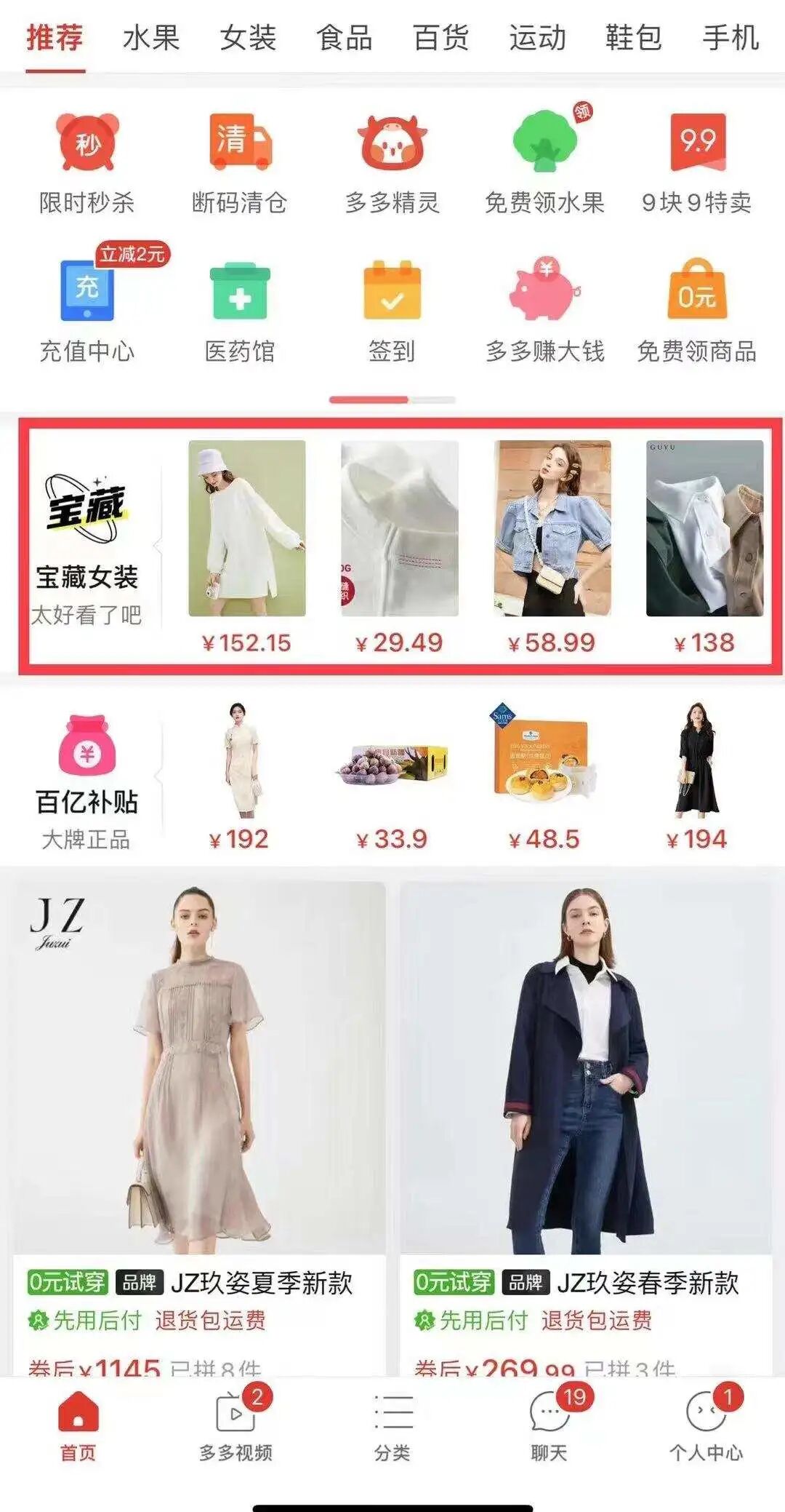 拼多多内测新功能“宝藏女装”