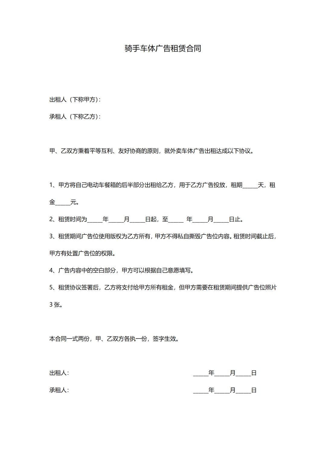 外卖餐箱广告位租赁合同,我们会作为中介代为签署