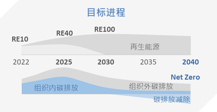 采用可再生能源将是实践净零碳排的核心,透过逐年增加可再生能源使用比例外,亦将从产品研发、生产制造,乃至企业营运等各环节,提升能源使用的效率,减少总体能源使用,降低环境资源消耗。