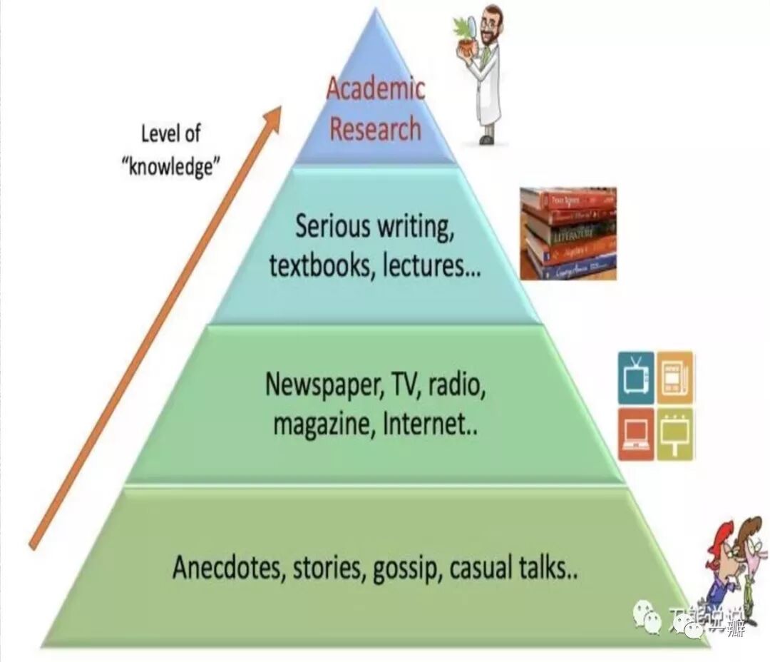 丁丁老师所说的一流知识难以大众化,但有些知识又必须有一个“大众化”的过程,所以,最后才有了所谓“三流的表达”,但这本质上只是“口语话的表达”。不过,必须承认的是,形式的转化意味着信息损失,所以我在文章中也多次强调知识应用的局限性,避免犯张冠李戴的错误。