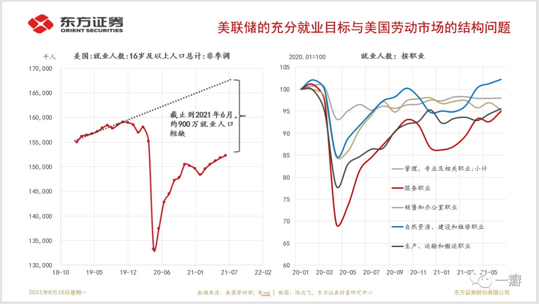 但是,一方面,7月最新就业数据显示劳动力市场状况有显著改善;另一方面,平均通胀目标“缺口”已经基本弥合。下一步,“物价稳定”目标将成为货币政策的主要矛盾。3季度是重要观察窗口,如果8-9月份就业市场状况维持改善态势,那么,Taper大概率在今年4季度落地。