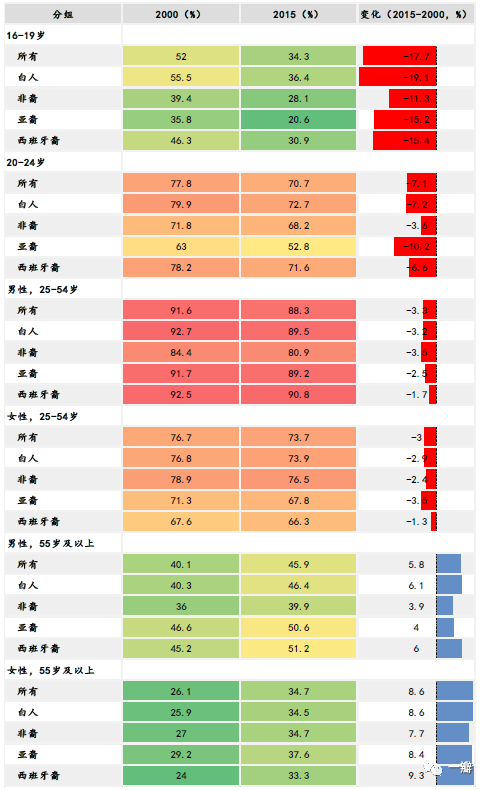 图16:2000-2015年和2015-2000年不同群体LFPR的变化