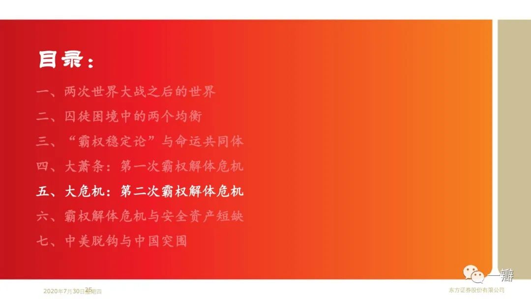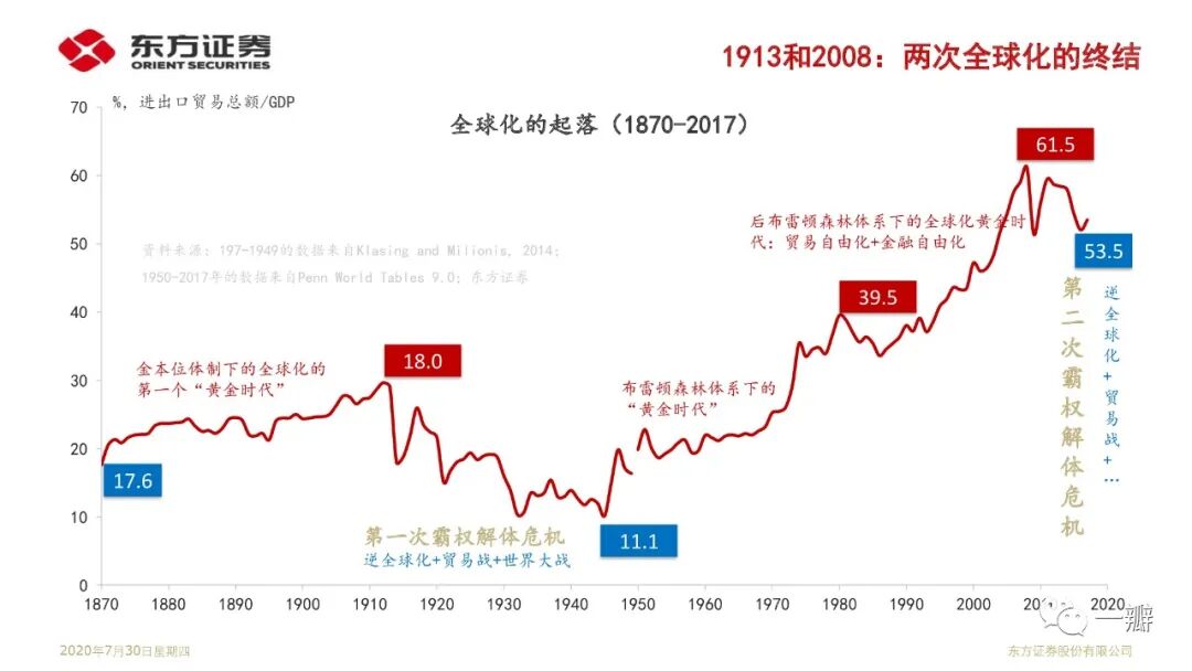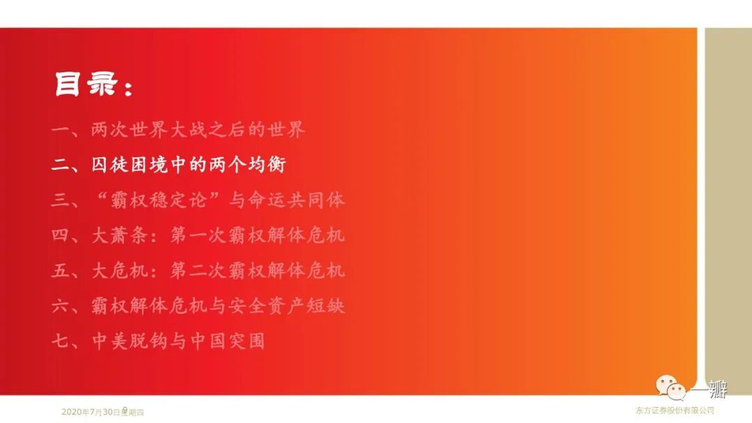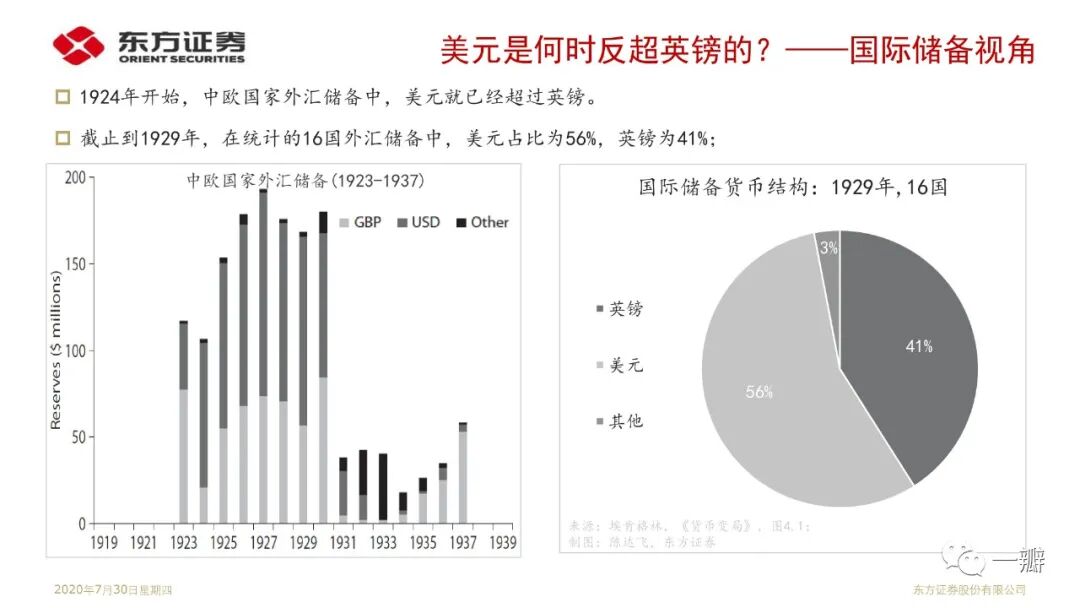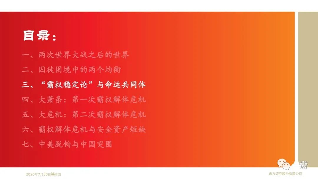 这是笔者基于“安全资产”专题延伸的思考。近20年安全资产短缺的特征事实反映的是单极化国际货币体系与多极化国际经济体系的矛盾;反映的是美国经济霸权衰落和金融霸权强势的矛盾。著名经济学家金德尔博格认为大萧条解释就是英美经济和金融权力不匹配的结果。国际政治学者约瑟夫·奈称之为“金德尔博格陷阱”。显然,2008年金融危机似乎也可以从这个角度来理解。当前世界经济面临的经济停滞、逆全球化、贸易冲突等问题,似乎都是霸权解体危机的表现形式。果真如此,那么,我们当前所处的阶段,或许还算不上至暗时刻。