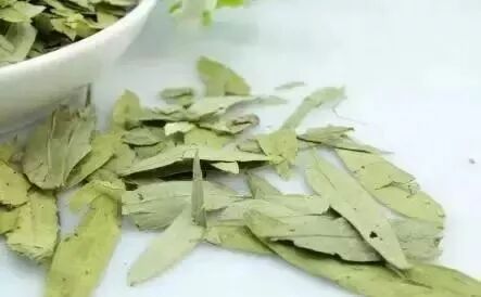 呈长卵形或卵状披针形,长1.5~5cm,宽0.4~2cm,叶端急尖,叶基稍不对称,全缘。上表面黄绿色,下表面浅黄绿色,无毛或近无毛,叶脉稍隆起。革质。气微弱而特异,味微苦,稍有黏性。