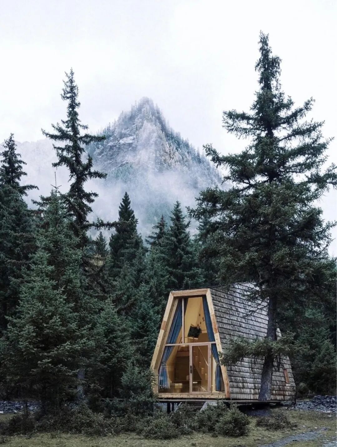 雪山下的树屋,星空下的篝火。