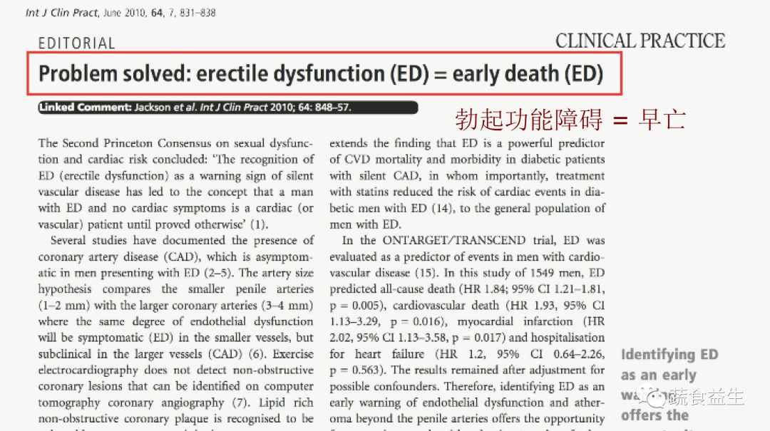 要带回家的信息是一个简单的等式:ED 代表“早亡”!(译注:ED = 勃起功能障碍)