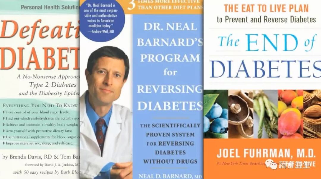 译注:上图 Neal Barnard 医生的两本书:《击败糖尿病》、《逆转糖尿病》和 Joel Furhrman 医生的书:《终结糖尿病》(已出中文版)