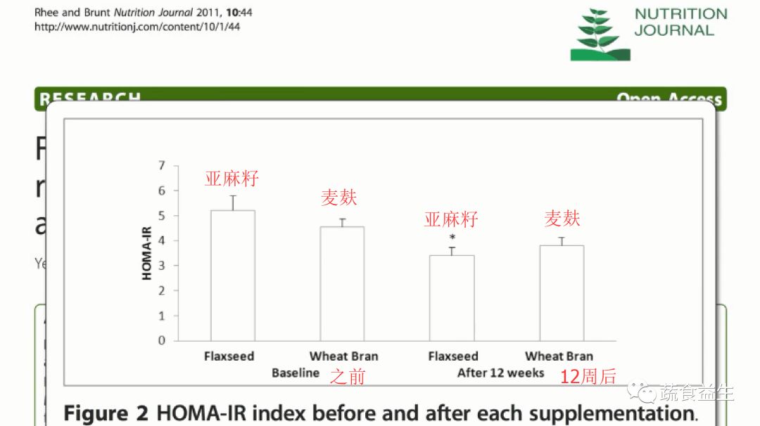 考虑到亚麻籽中植物营养素的抗氧化特性,摄取亚麻籽12周后,胰岛素抗性有一个小的但显著的下降 — 这可能与氧化应激下降有关。
