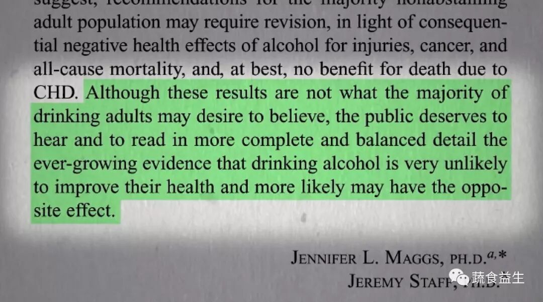 虽然这些结果不是大多数饮酒者所愿意相信的,但大众其实应该多去了解和阅读关于一直在更新的证据的更为完整且公正的细节,即,喝酒确实不太可能对健康有益。