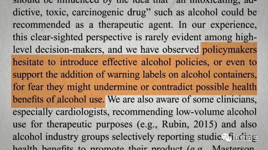 政策制定者在推出有效的酒精政策方面犹豫不决,甚至犹豫是否该支持在产品上增加警告标签,因为担心这样会驳斥到使用酒精所带来的任何潜在健康益处。