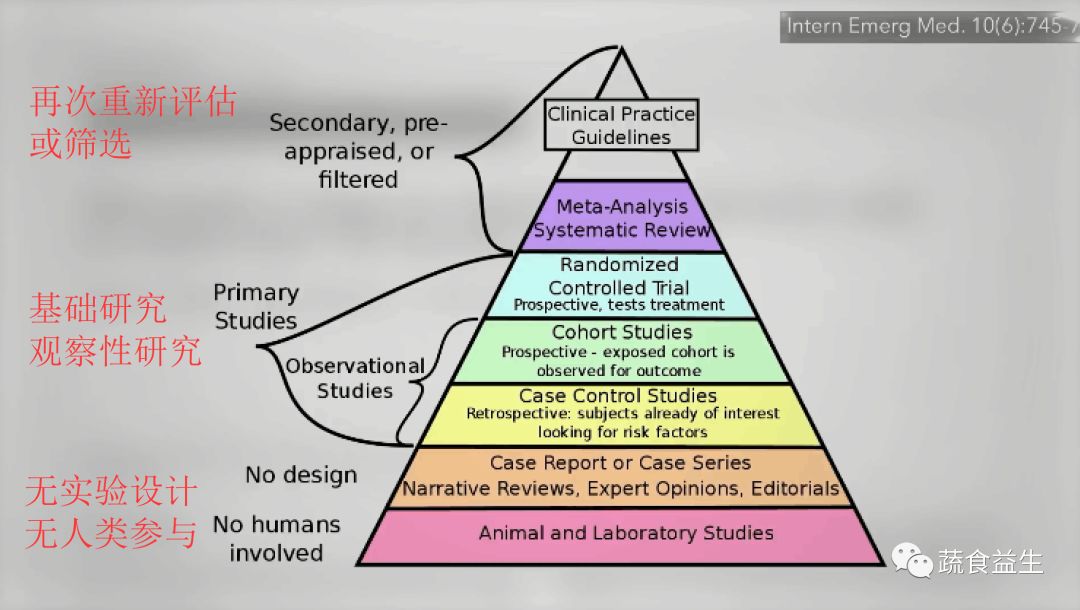 作为原因之一,当你关注证据层次时,金字塔较高之处意味着更强的证据,像随机对照实验这样的介入性实验往往能比人群观察性研究提供更佳的证据,因后者可能会遭受反向因果和混杂因素的双重影响。