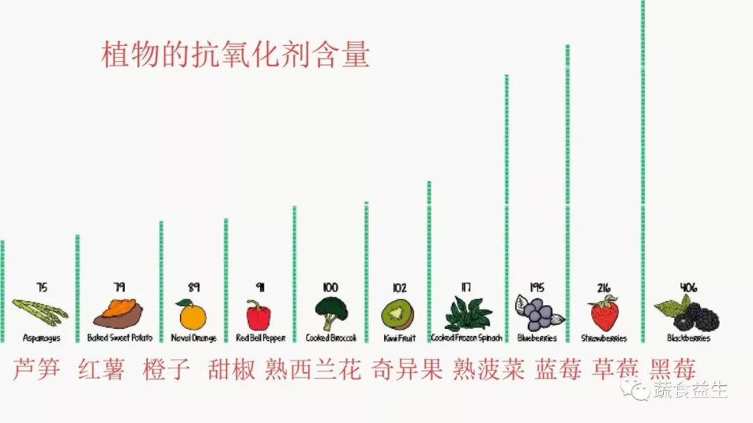植物食品平均比动物食品多 64 倍的抗氧化剂。