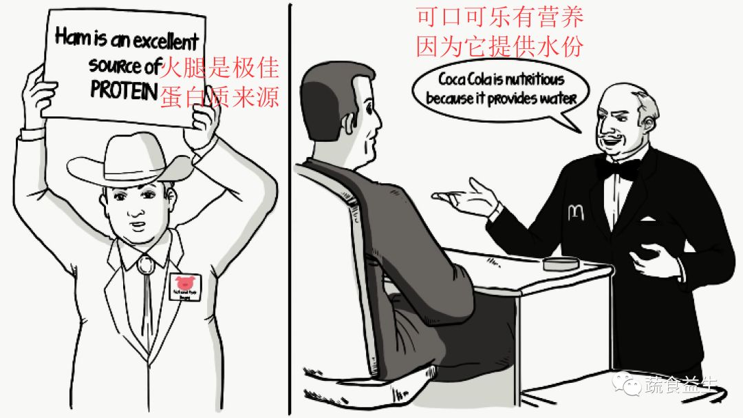 当国家猪肉委员会推广火腿作为蛋白质的极佳来源时,我不禁联想起麦当劳营销高级副总裁的名句,他在法庭上宣誓说可口可乐是很营养的,因为它提供水份。