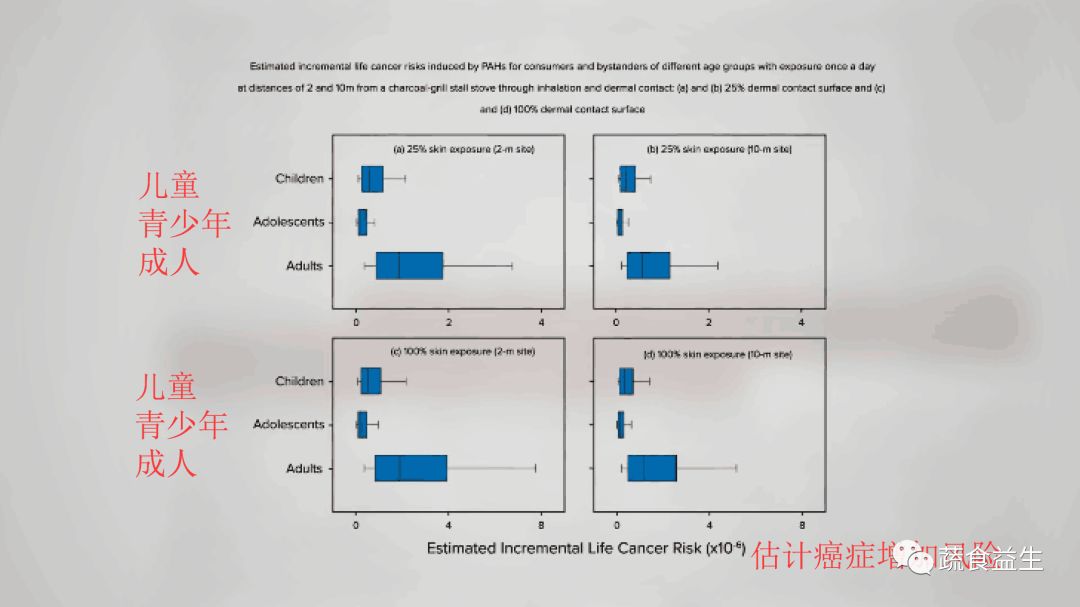 这些结果表明在室外暴露于烧烤烟雾(特别是通过皮肤)可能是一个重要但很大程度上被忽视的健康危害源,但他们的估计来自每天一次,全年不间断的烧烤。