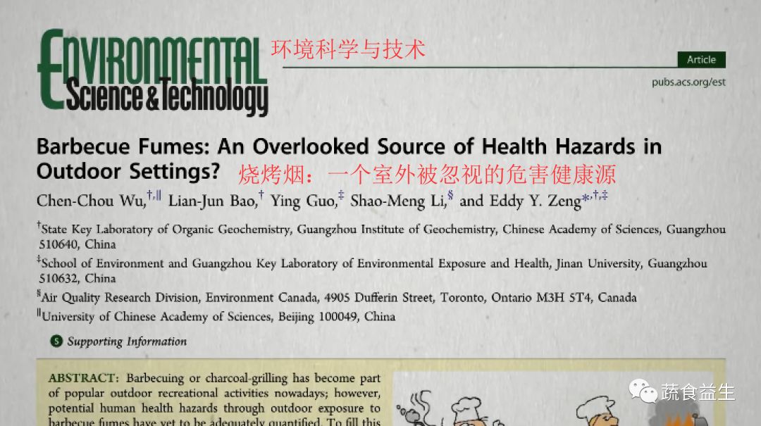 Wu CC, Bao LJ, Guo Y, Li SM, Zeng EY. Barbecue Fumes: An Overlooked Source of Health Hazards in Outdoor Settings?. Environ Sci Technol. 2015;49(17):10607-10615.