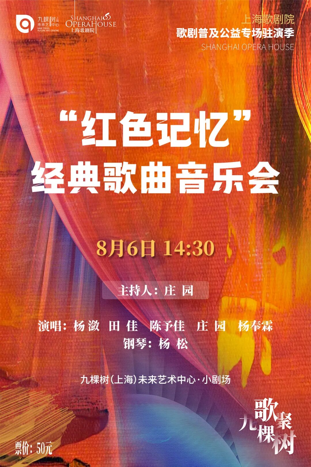 由九棵树(上海)未来艺术中心与上海歌剧院联合推出的《歌“聚”九棵树—上海歌剧院歌剧普及公益专场驻演季》,将带来近30场歌剧普及公益演出,通过经典歌剧赏析、音乐会专场、舞蹈等多元新颖的艺术形式,将歌剧中的经典名篇进行新颖编排和全新诠释,融合剧目介绍、音乐赏析与经典唱段等,传递歌剧艺术之美。