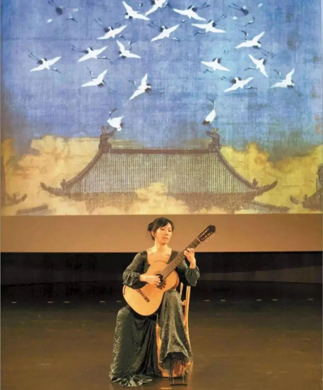 西班牙领使特别赠送她一把演奏会用吉他