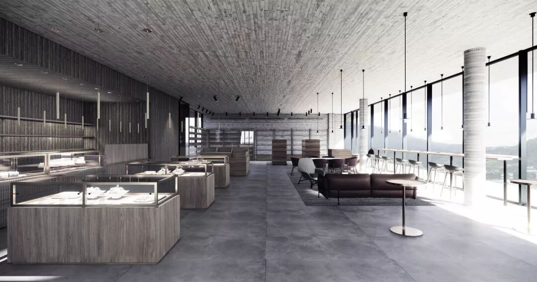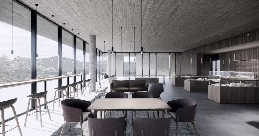 渔乡茶舍从形式创作的手法上来看,它始终是简洁的,简洁到只剩板、柱、剪力墙等作为建筑的必要要素,但从技术细节的角度来说,它又是复雜的,实现了设备、室内、景观的一体化设计。通过对地形的借用,接近完工的渔乡茶舍依偎在富春江畔的山坳中,薄而深远的挑板与粗粝厚重的混凝土产生的“薄”与“厚”的对比,在光影的调和下,已频频打动亲临现场的人们。