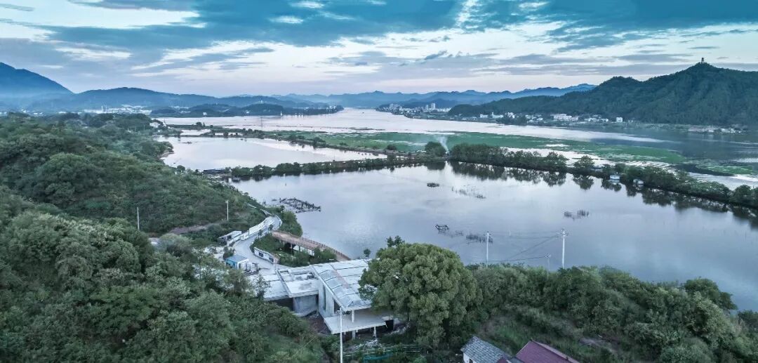 场地位于富春江、兰江、新安江三江交汇处,江面开阔;拥三江,观乌龙山,望双塔,山水相映。周边散落分布着一些小村庄,建筑的典型特征是青砖白墙,给人质朴清新的感觉。民居形制无论是平面、立面还是室内外装饰,都明显地与皖南、赣北的住宅近似。